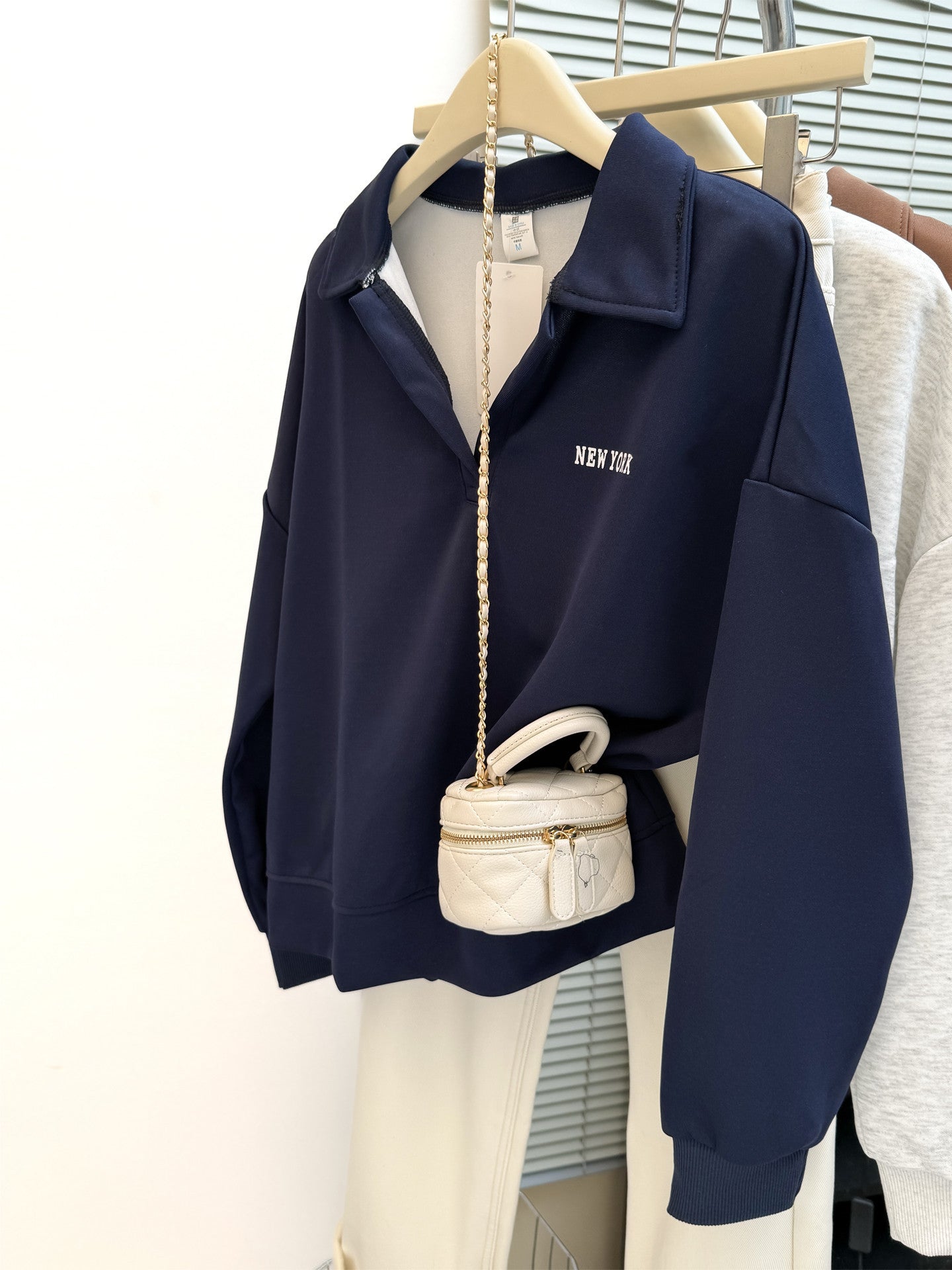 Casual Long Sleeve Polo Neck Sweatshirt for Women Loose FitV-Neck Top Wear